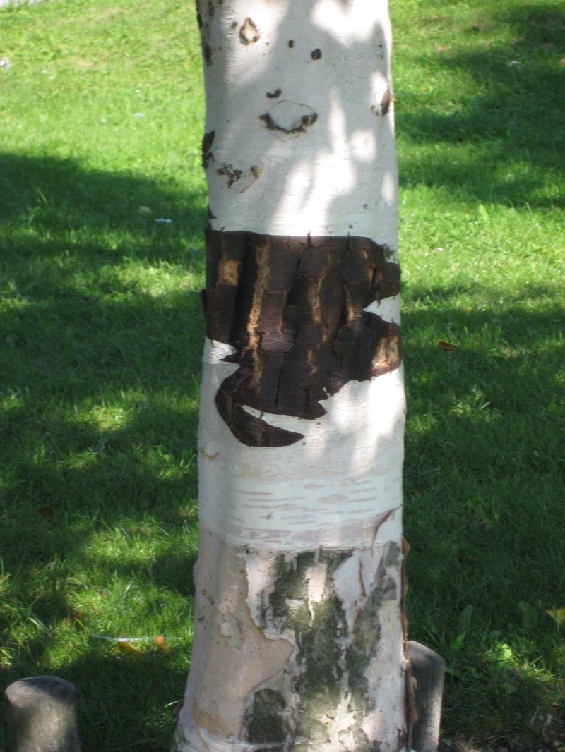 Deze schors is anders dan die van andere bomen. Deze is wit.